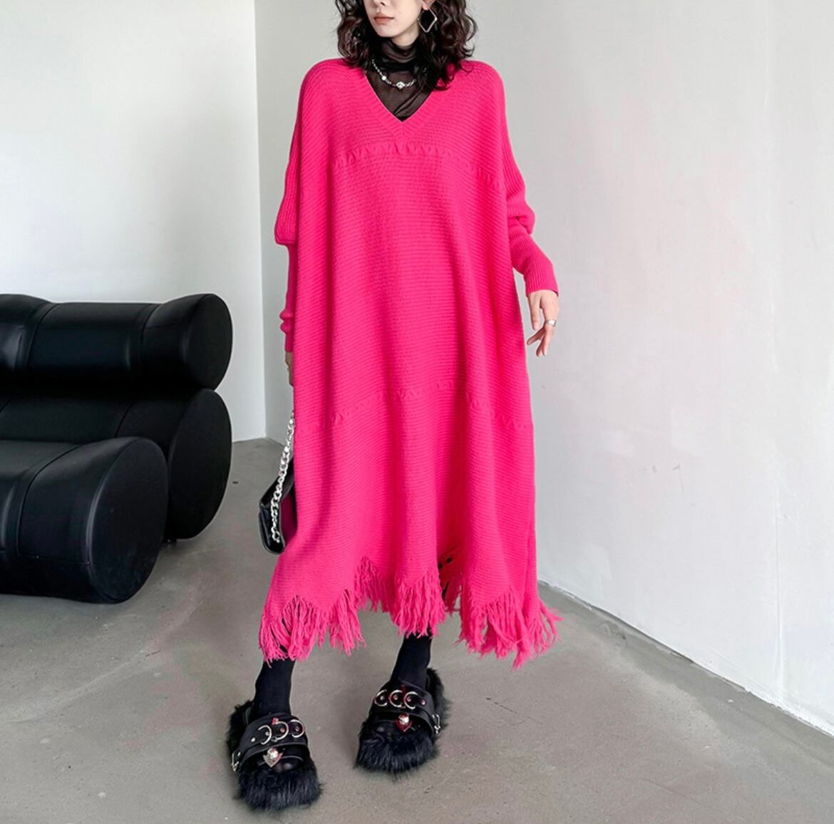 ロングワンピース Vカラー レディース 厚手 秋冬 ニット カットソー