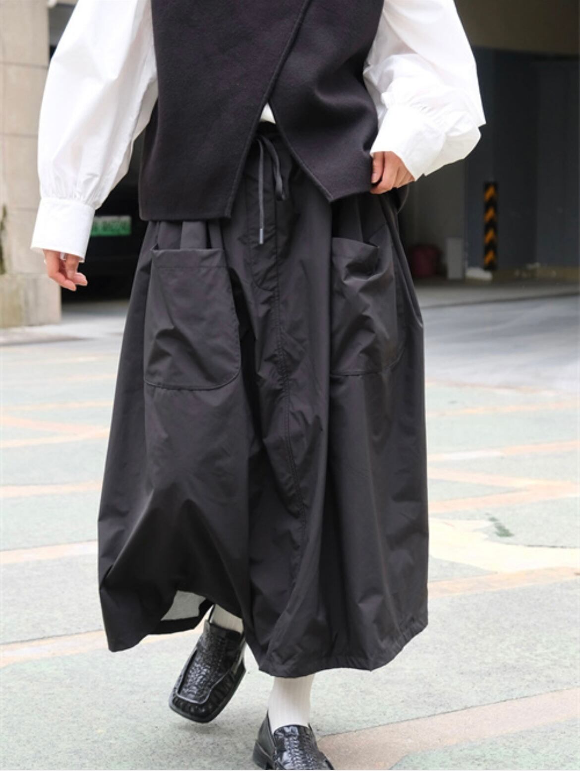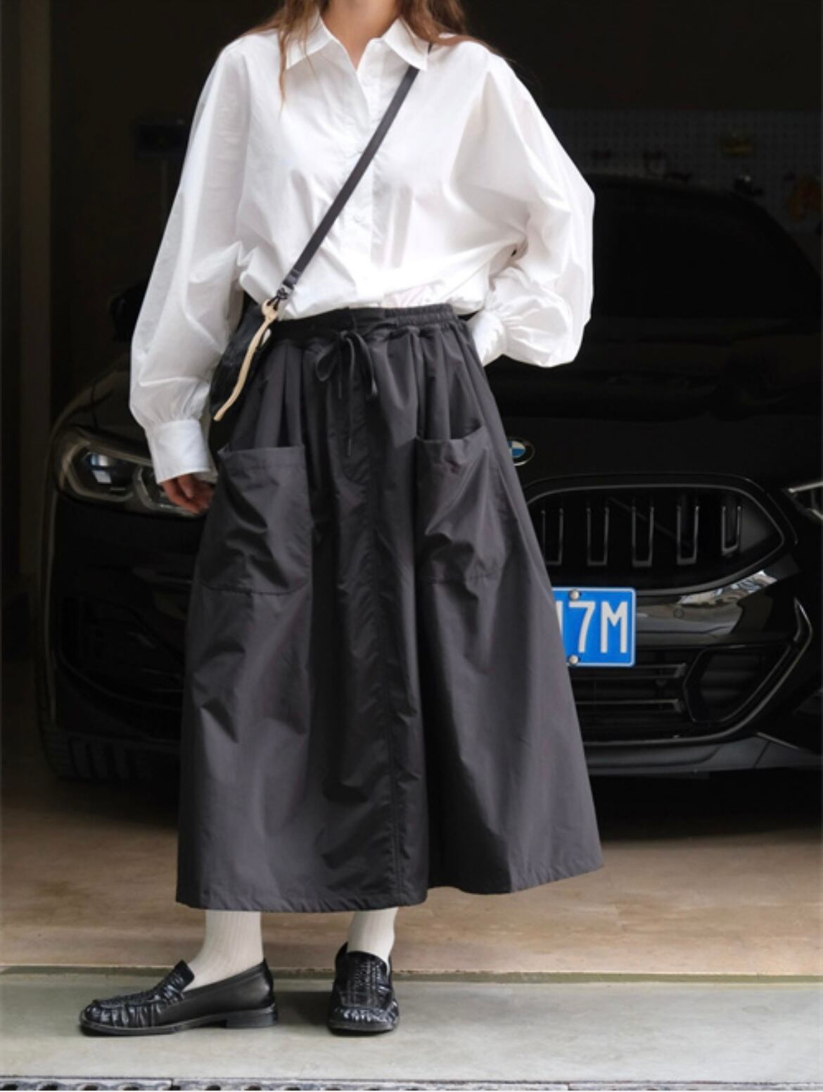 レディース ロングスカート ボトムス ポケット カジュアル 着痩せ 2色