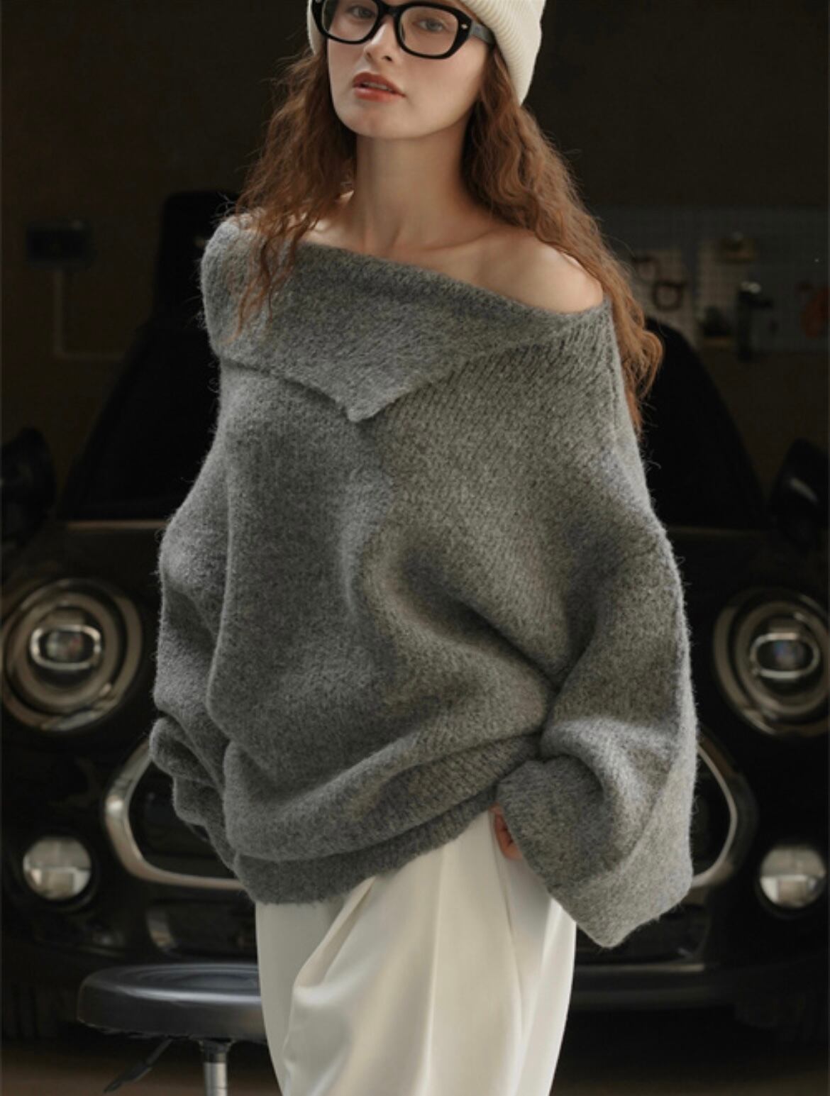 レディース トップス セーター シンプル 無地 長袖 カジュアル 2色