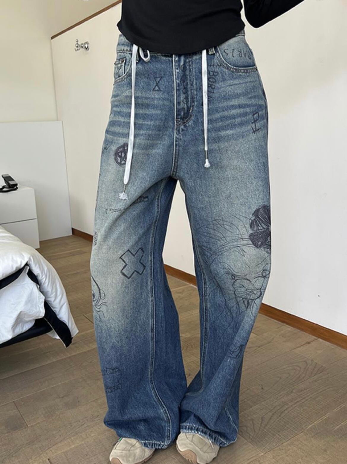 レディース ロングパンツ ジーンズ デニムパンツ ボトムス ワイド