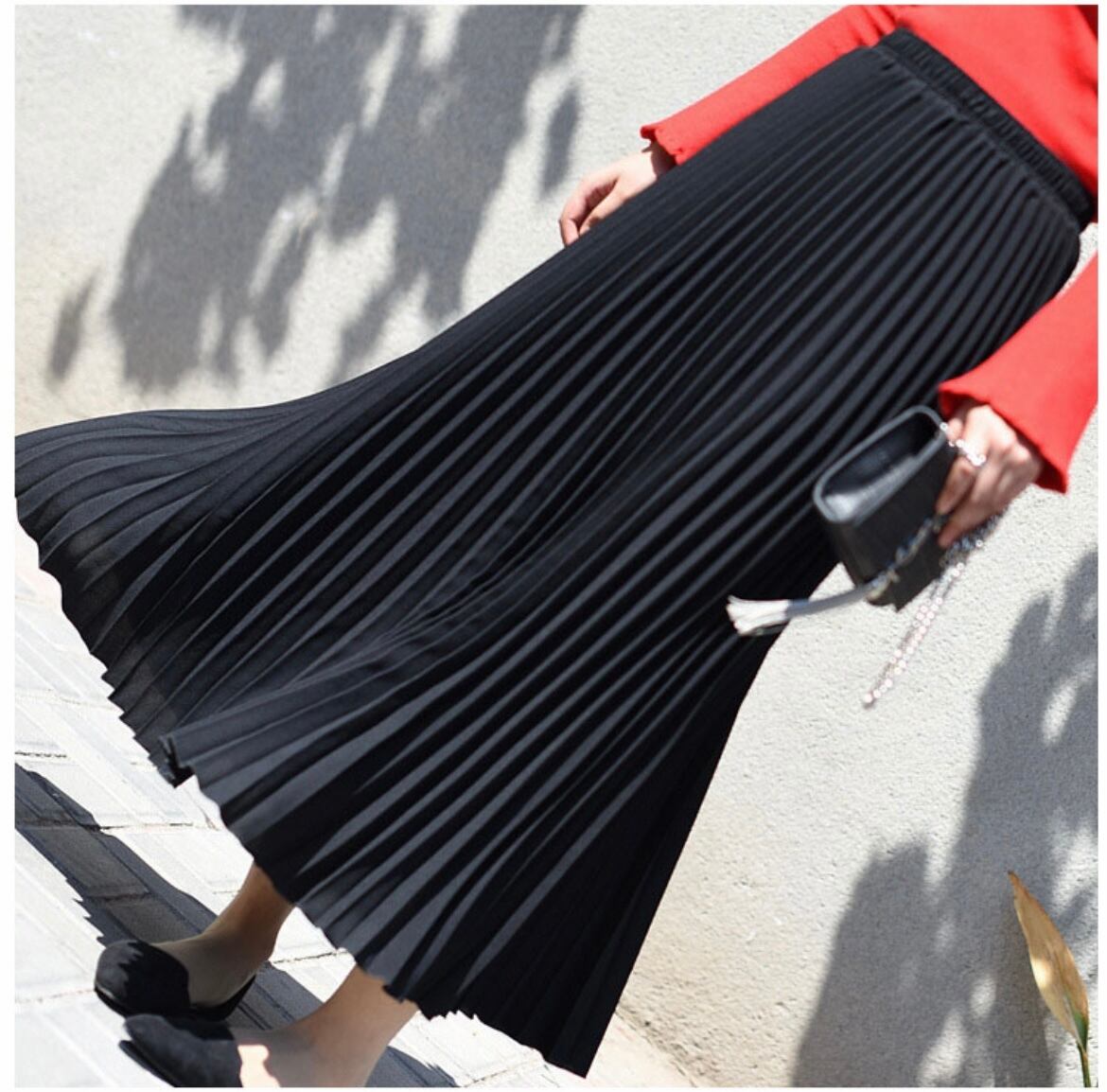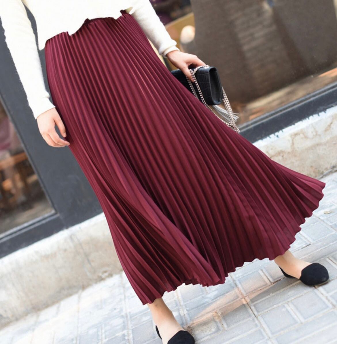 フレアプリーツスカート 無地 ロングスカート ウエストゴム Aライン 裏地付き