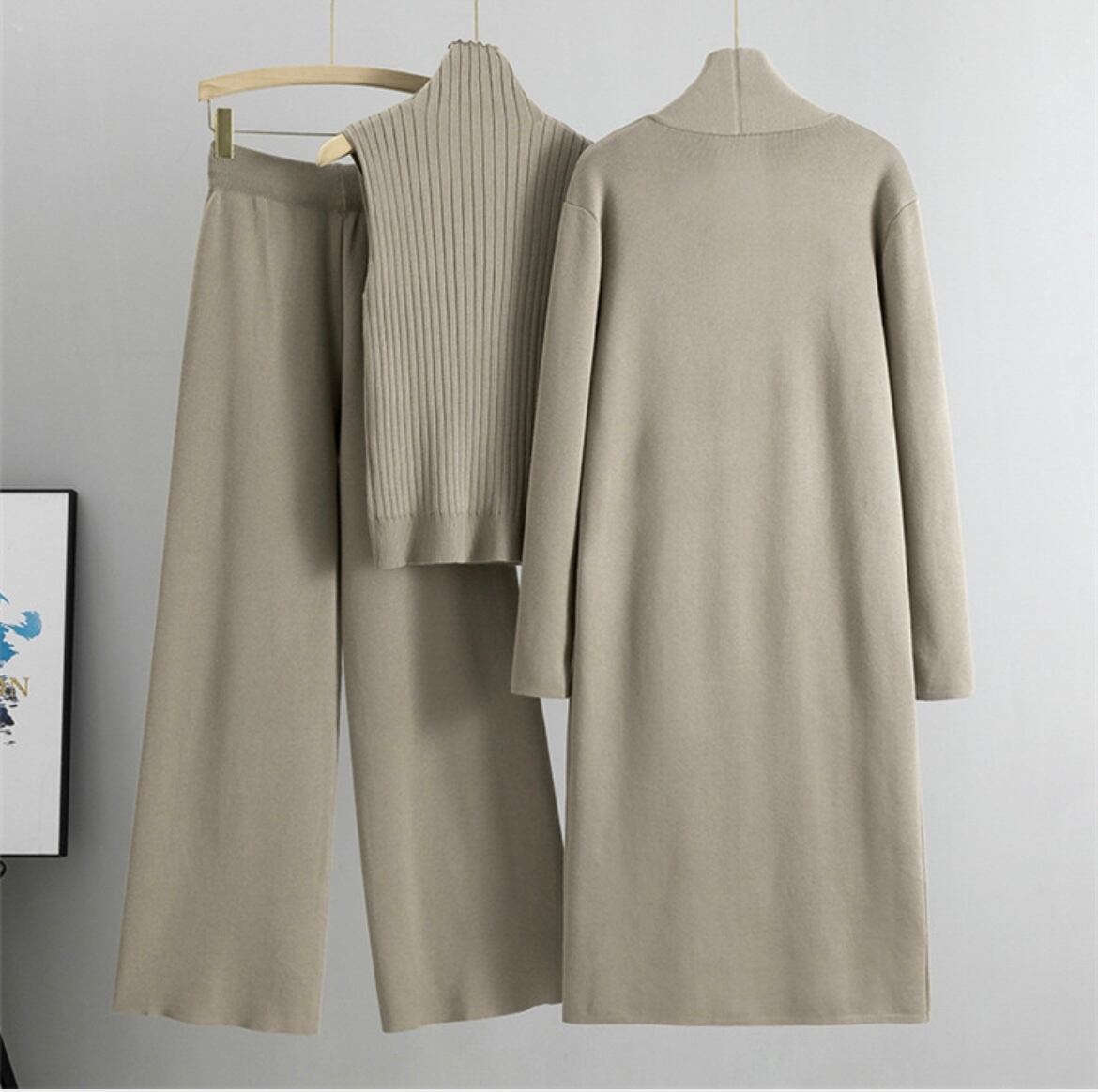 レディース ハイウエスト スラックス 3点セット ニットトップス スリム ニットベスト