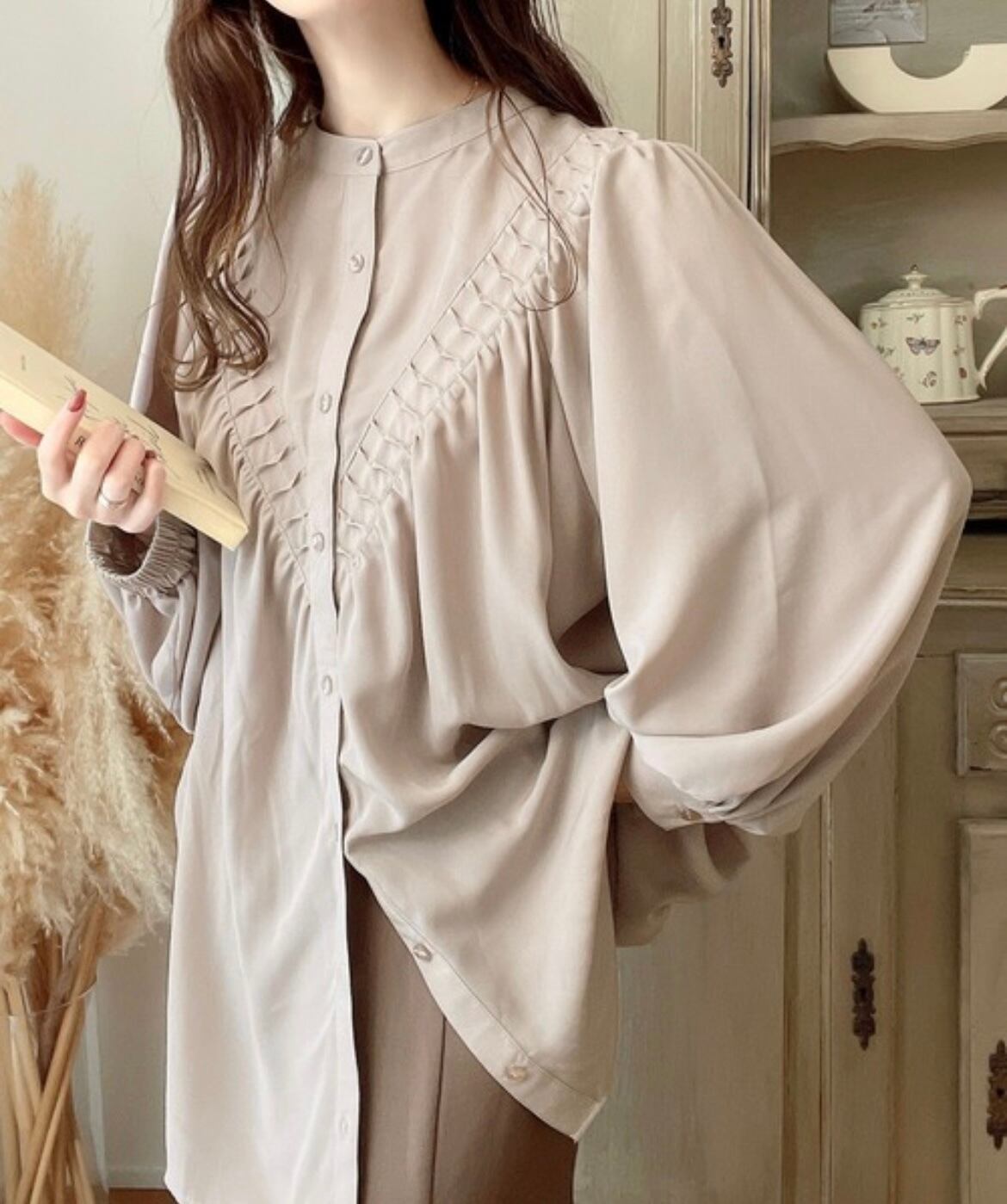 レディース ブラウス シフォンシャツ トップス 長袖シャツ ランタンスリープ