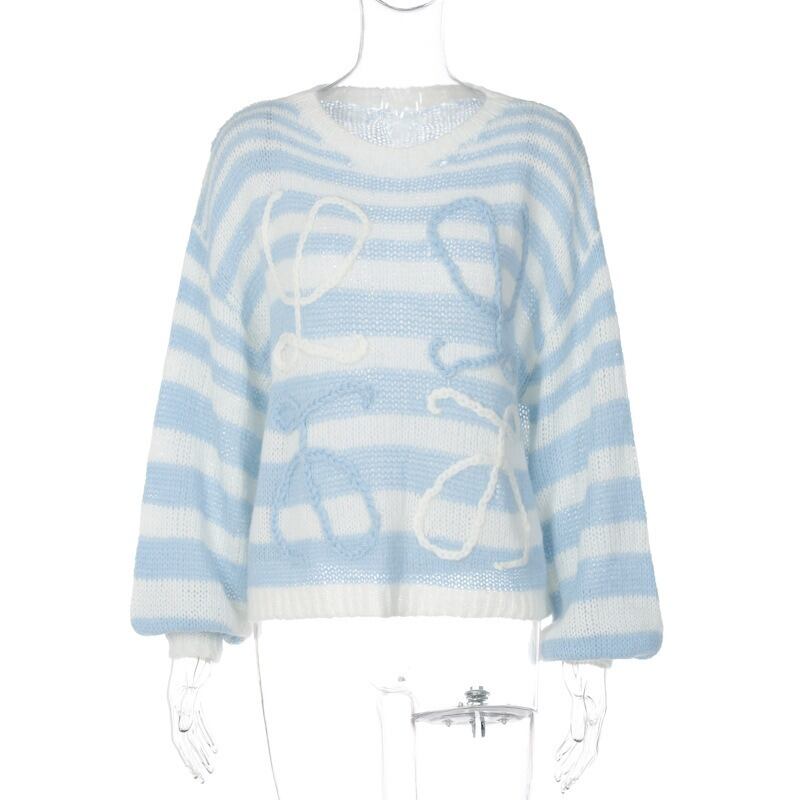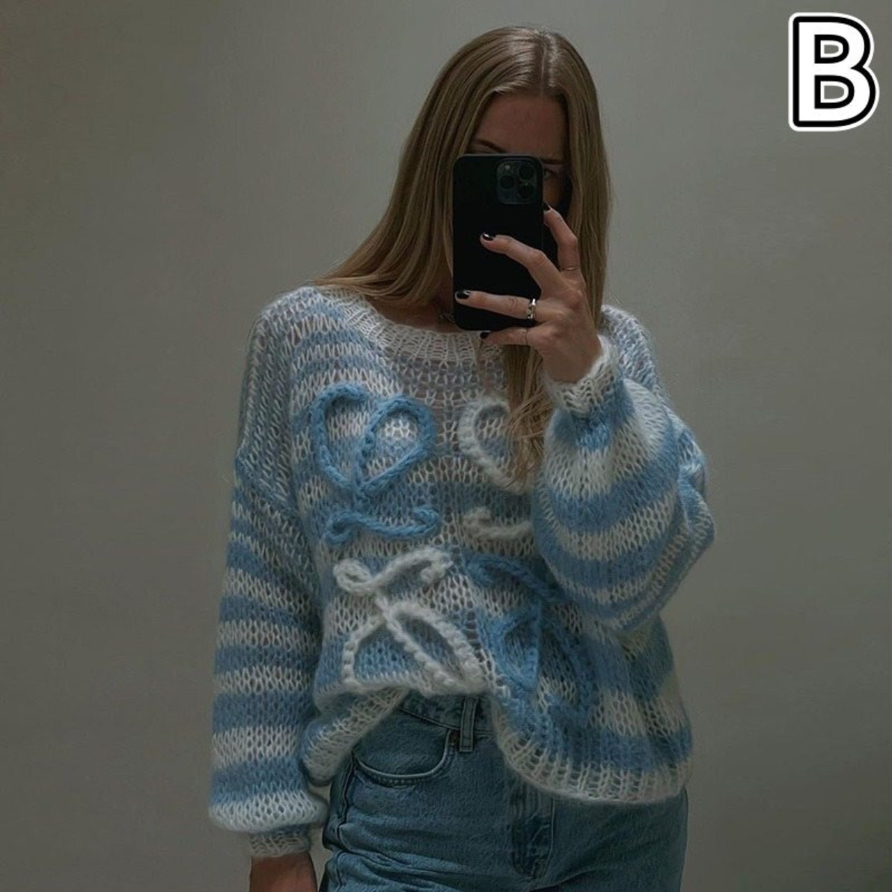 レディース ニット セーター 毛糸 ボーダー クルーネック