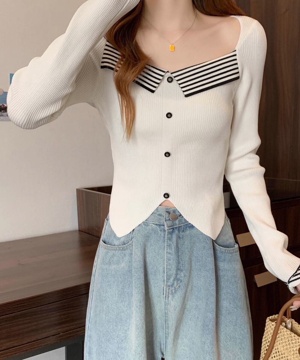 レディース ニットトップス スクエアネック