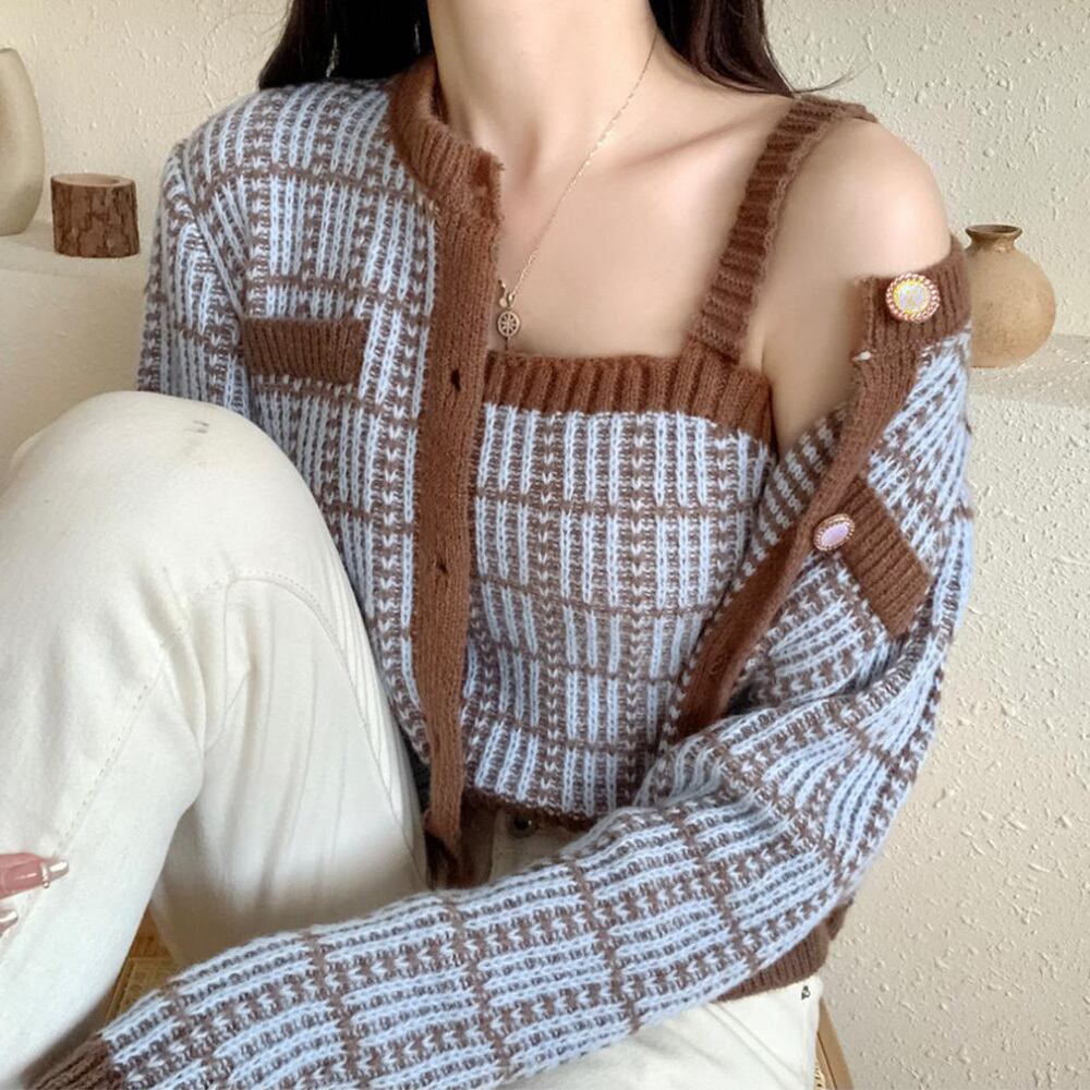 ・柔らかなニット素材を使用しており、肌触りがよく、日常使いにぴったりなアイテムです。カーディガンとキャミソールのセットは、組み合わせることで多彩なコーディネートが楽しめ、春秋のコーディネートに軽やかさをプラスします。シンプルながらもスタイリッシュなデザインは、カジュアルにもエレガントにも対応でき、1枚持っているだけで重宝するアイテムです!
